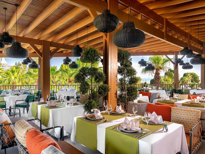 Tesis ultra herşey dahil konseptinde hizmet vermektedir. Tesis 3 adet ala carte restaurant ile misafirlere özel hizmet sunmaktadır. Açık ve kapalı yüzme havuzları ile eğlenme ve dinlenme imkanı bulabilirsiniz.