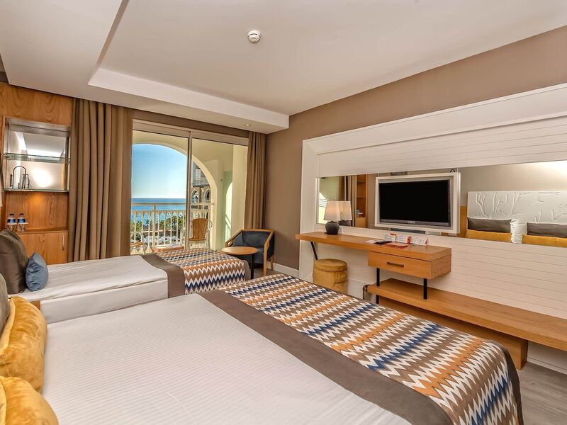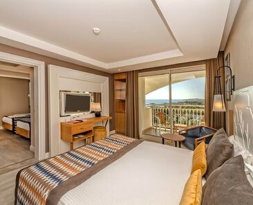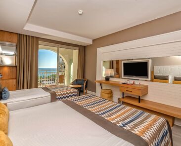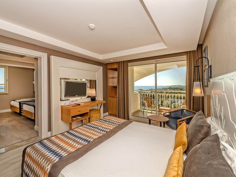 Aile Odaları: 18 adettir. 38 m² genişliğindedir. Max. 4 kişilik konaklamaya uygundur. Deniz ve havuz manzaralı, ara kapılı ve iki odadan oluşmaktadır.