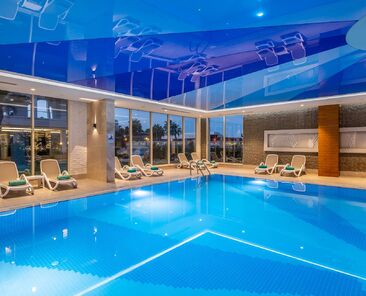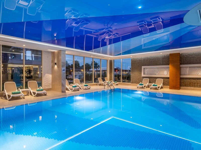 Plaj:Kum Kapalı Havuz: 380 m2, Derinlik 150 am (Covid önlemlerinden dolayı hizmete kapalı)