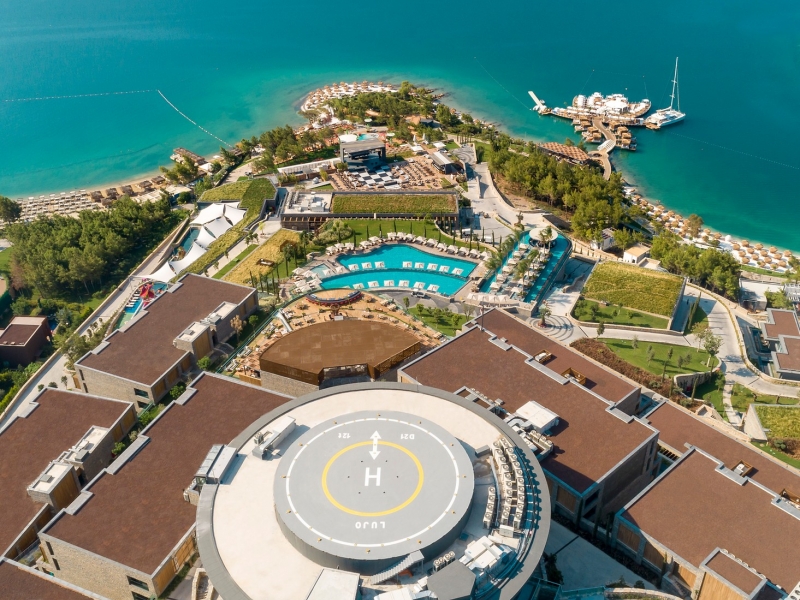 Lujo Hotel, Bodrum Güvercinlik Mevkiinde, Milas-Bodrum Havalimanı 15 km, Bodrum Şehir Merkezi 20km, Güvercinlik merkeze 4km, Bodrum Kalesine 25km, Halikarnas Mozolesi 26km, Palmarina Yalıkavak 40km, Apollo Tapınağı 98km, Efes Antik Şehir & Meryem Ana Evi 150 Km mesafededir.Tesiste,1km ince beyaz kum plaj (Ana Plaj, Sessiz Plaj, Indigo Beach Club) ve 1500 m² Ana İskelesi bulunmaktadır.