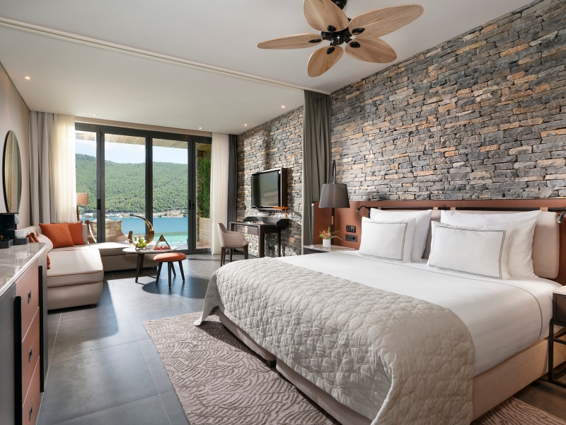 Forest Room Sea View (Adult Only): 55 m2, tam deniz manzaralı, 1 çift kişilik geniş yatak (2m*2m), sofa, banyoda duş, tuvalet, çift lavabo ve giyinme bölümü, teras, terasta koltuk ve terasta jakuzi