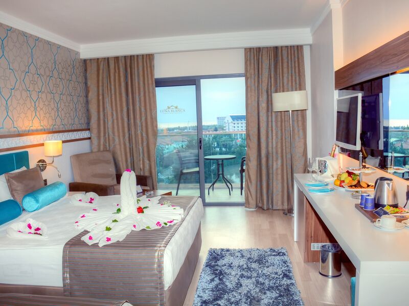 Luna Blanca Resort&Spa Antalya Side Beldesi Kumköy mevkiinde bulunmaktadrı, sahilinin kristal görünümlü denizine 300 m mesafede inşa edilmiş olup