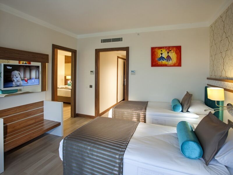 Balkon hariç 50 m2 olup, 2 odalı ve ara kapılı, özel dizayn edilmiş bu oda tipinde 2 banyo bulunmaktadır. 1 adet çift kişilik yatak ve 2 adet tek kişilik yatak mevcuttur.