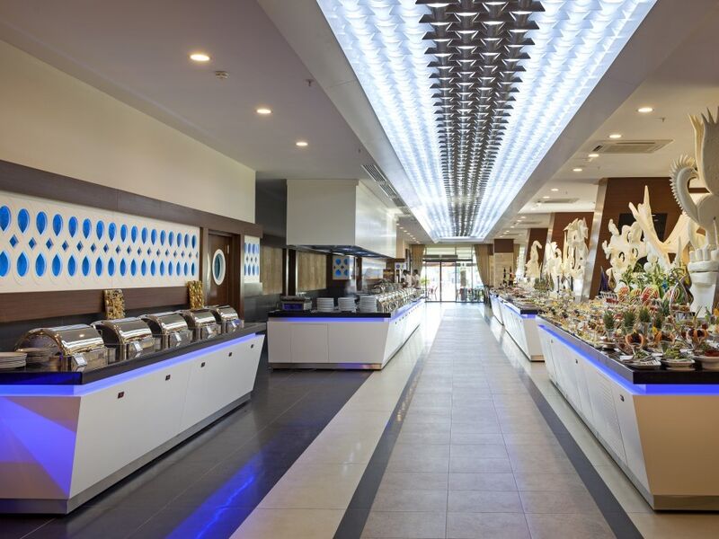 Sabah öğle ve akşam açık büfe yemekler ücretsiz. Tesisin belirlemiş olduğu markalar dahilinde bazı yerli ve yabancı alkollü ve alkolsüz içecekler 24 saat ücretsiz.