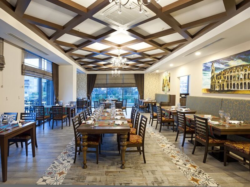 A la carte restoranlar rezervasyonlu ve 1 haftalık konaklamalarda restoranlardan yanlızca bir tanesi bir kez ücretsiz, 2 haftalık konaklamalarda ise iki kez ücretsiz.