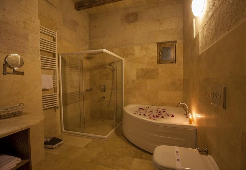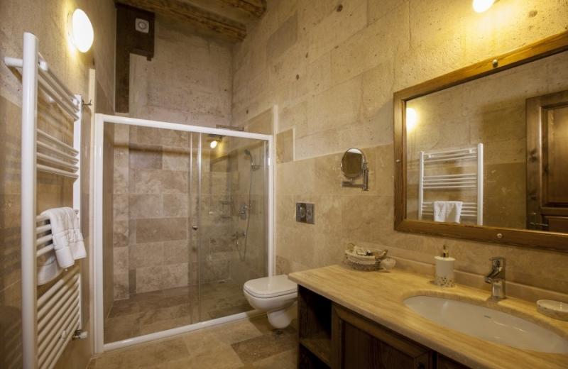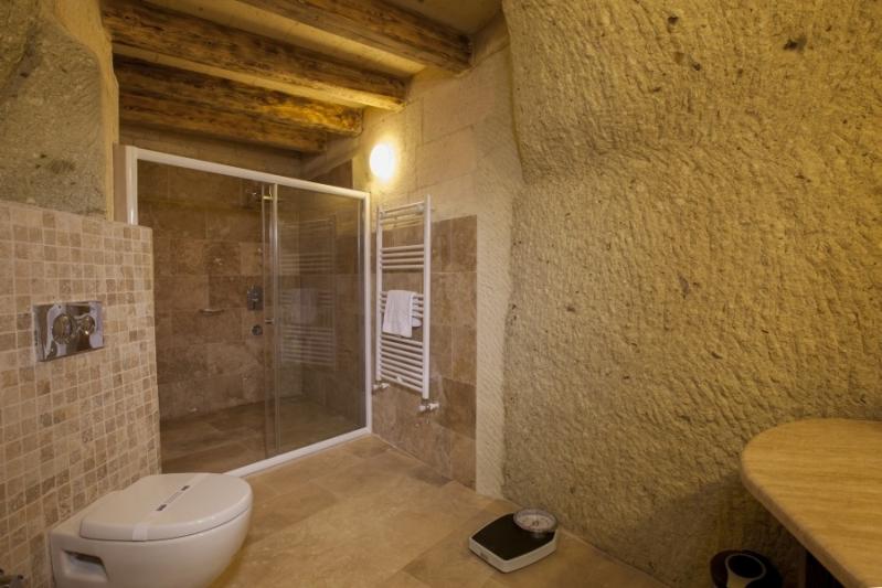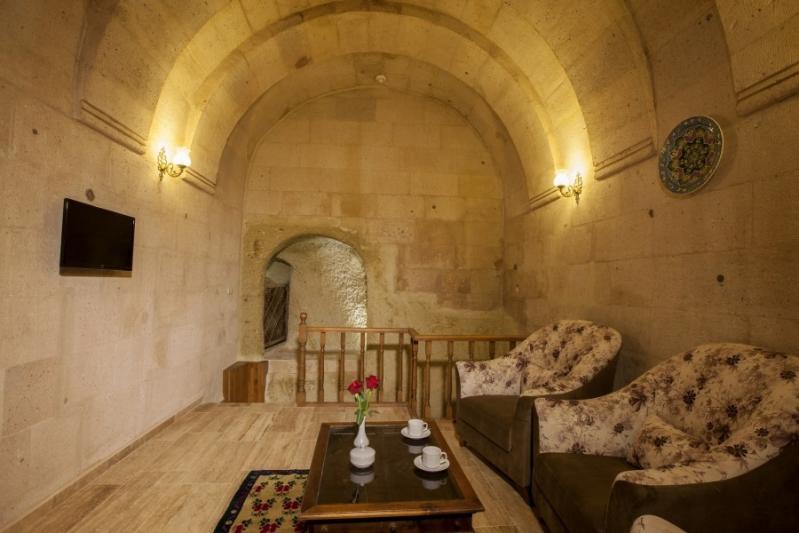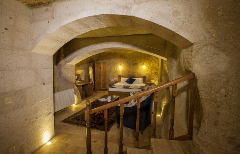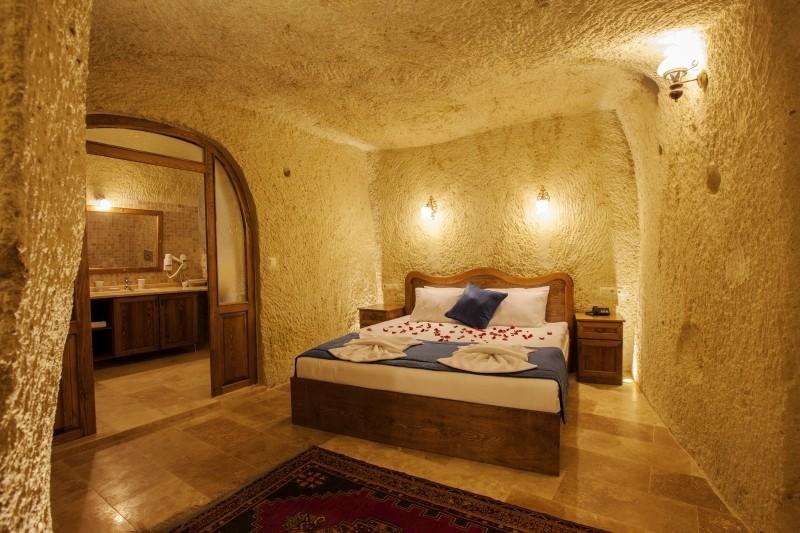 Özenle dizayn edilmiş kayadan oyma odaları bulunmaktadır