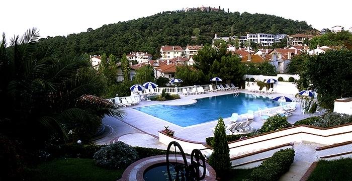 Bugün 3.600 m2 arsa üzerinde; 620 m2 taban ve 3.500 m2 toplam inşaat alanı olan yapıda, 36 normal 9 deluxe konuk odası, TV ve çocuk odaları, lobby, lobby bar ve pastahane, 2 adet toplantı ve seminer odası, 2 adet workshop odası, restoran ve yüzme havuzu yer almaktadır. Halki Palace, adanın ormanları içinde binicilik, bisiklet ve yürüyüş gibi her türlü spora olanak sağlayan emsalsiz manzaralara hakim bir alanda hizmet vermektedir.