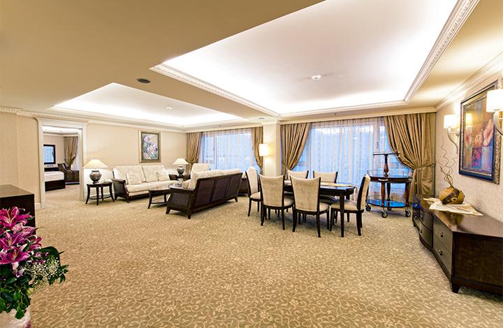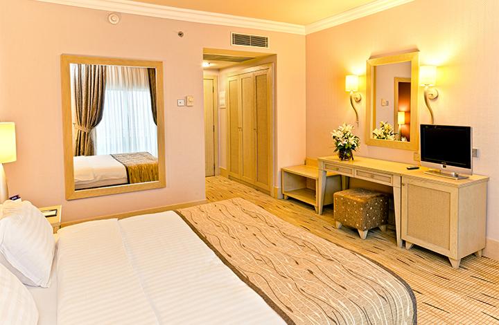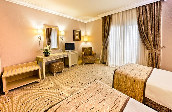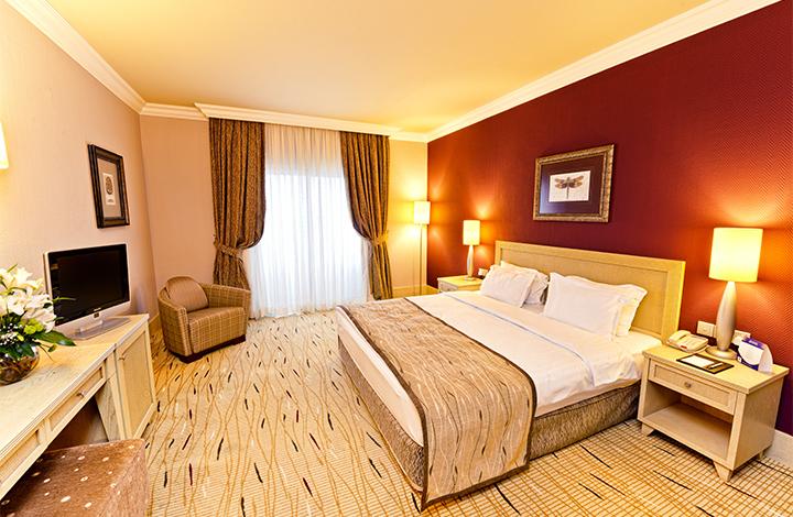 Tesiste 279 standart otel odaları Balkonlu, balkonsuz odalar, duş, halı kaplı zemin, klima (merkezi), küvet, minibar, müzik yayını, oda servisi, saç kurutma makinesı, telefon, televizyon.