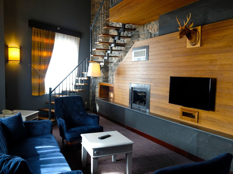 jakuzili banyoları, tek oturma odası ve elektronik şöminesiyle her türlü konforu sağlar. Sıra dışı
