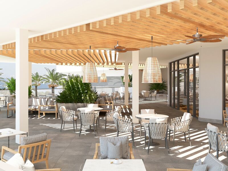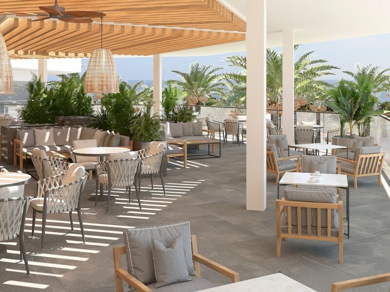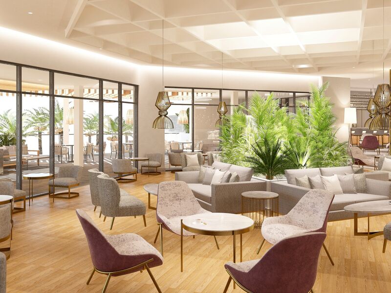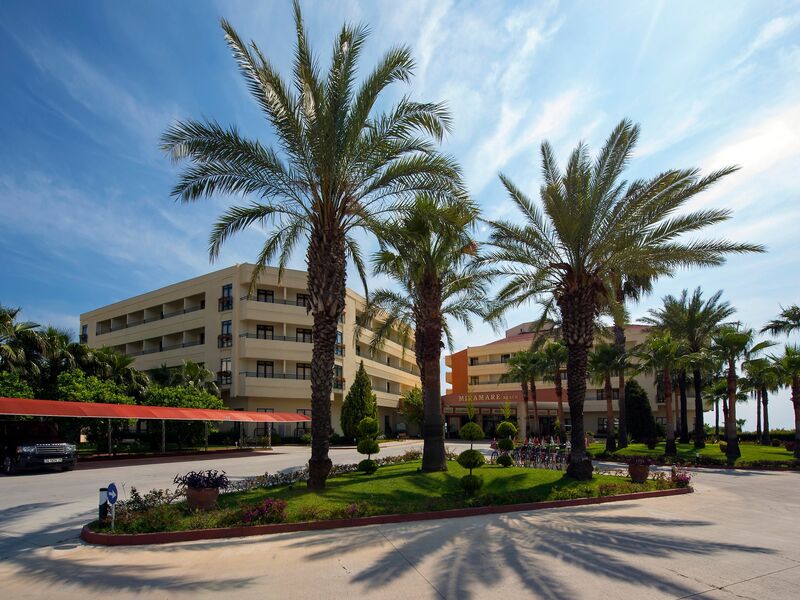 Miramare Beach Hotel, 4 katlı ana binada 218 oda ve 450 yatak mevcuttur. Ana binada asansör, resepsiyon, Lobi, Lobibar, internet köşesi