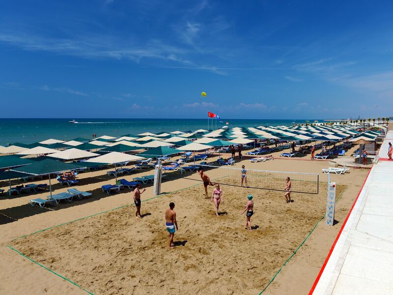 Tesisin 200 m uzunluğunda kum plajı bulunmaktadır, güneş şemsiyeleri, minder ve havlu plajda ücretsiz sunulmaktadır ,giriş günü hariç hergün bir sonraki gün için 15.00'te plaj havlusu kişi sayısına göre odaya bırakılmaktadır.