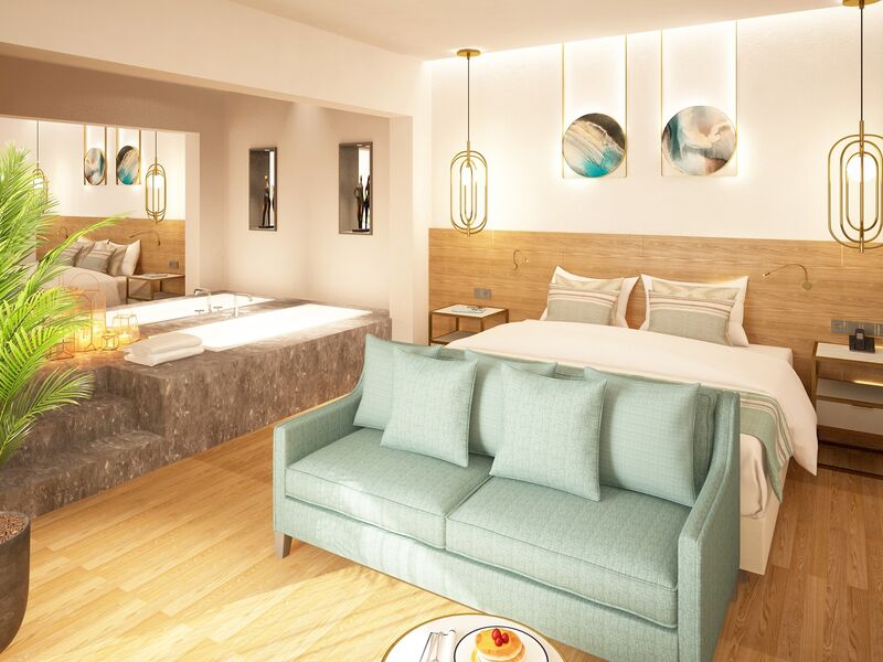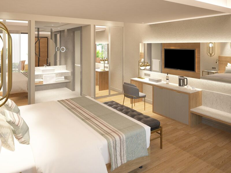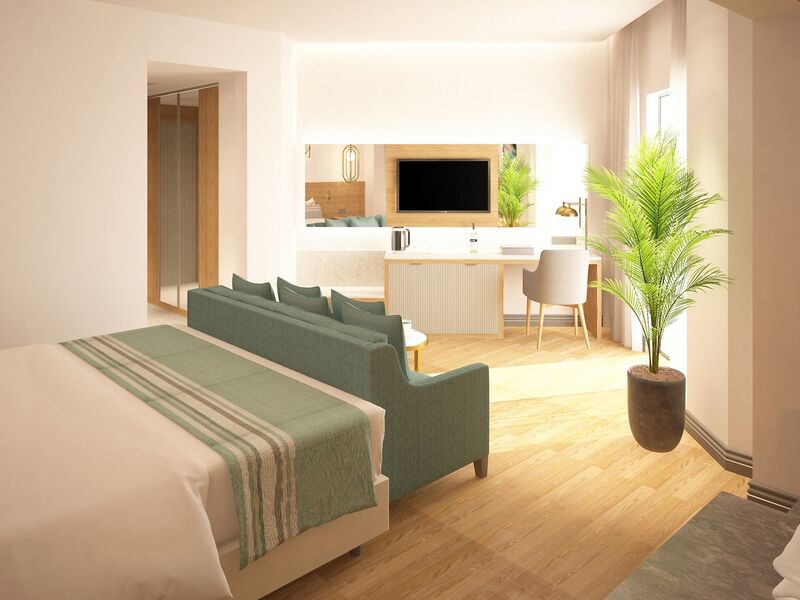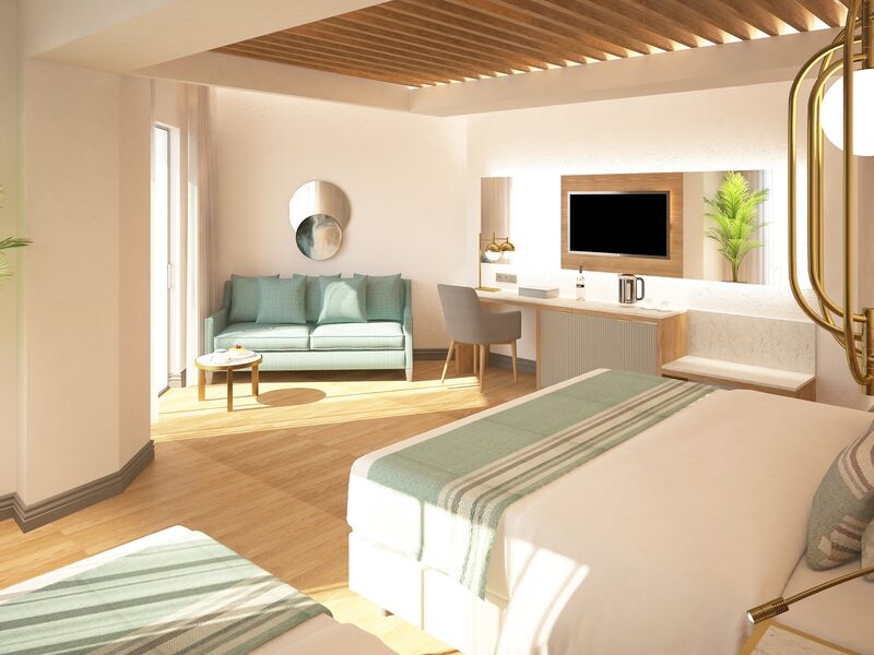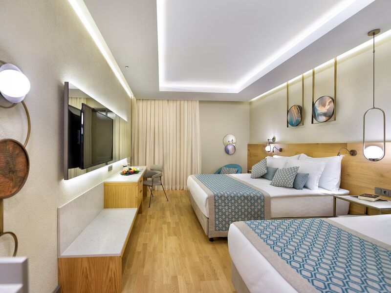Odalarda küvet/WC, para kasası, TV, direkt telefon, fön, halı ve laminat zemin, merkezi klima (belirli saatlerde), talep halinde Balkonlu, Deniz-Havuz veya Kara manzaralı oda, minibar mevcuttur.