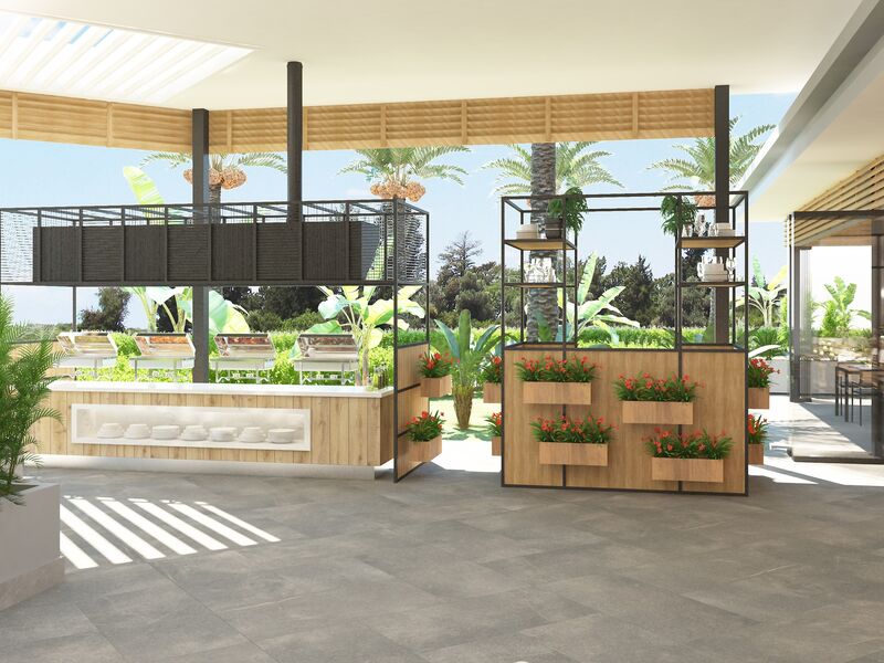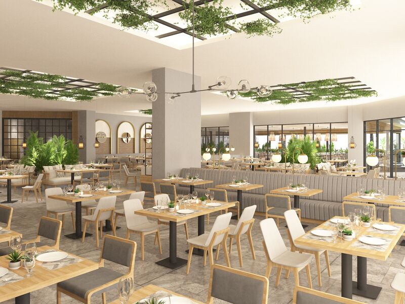 TV-odası, oyun odası, dış terası bulunan ana restoran, dükkanlar, hamam, kapalı havuz, Aqua park spor salonu ve kuaför, havuz manzarası ve güneşlenme alanı olan bahçede şezlong,minder ve şemsiyeler mevcuttur.
