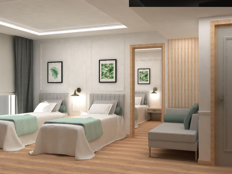 9adet 3 katlı villa binalarında toplam 108 aile odası vardır.