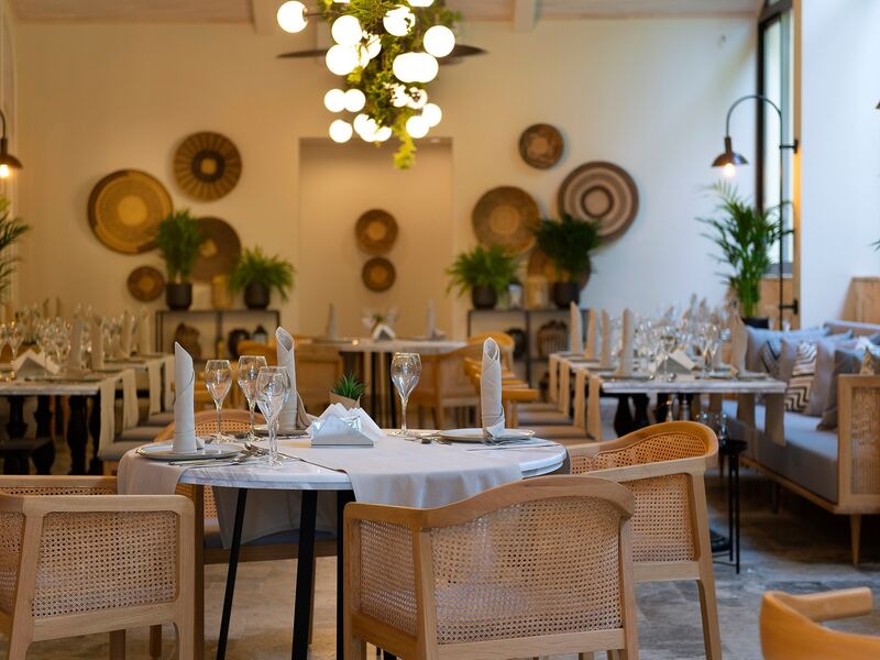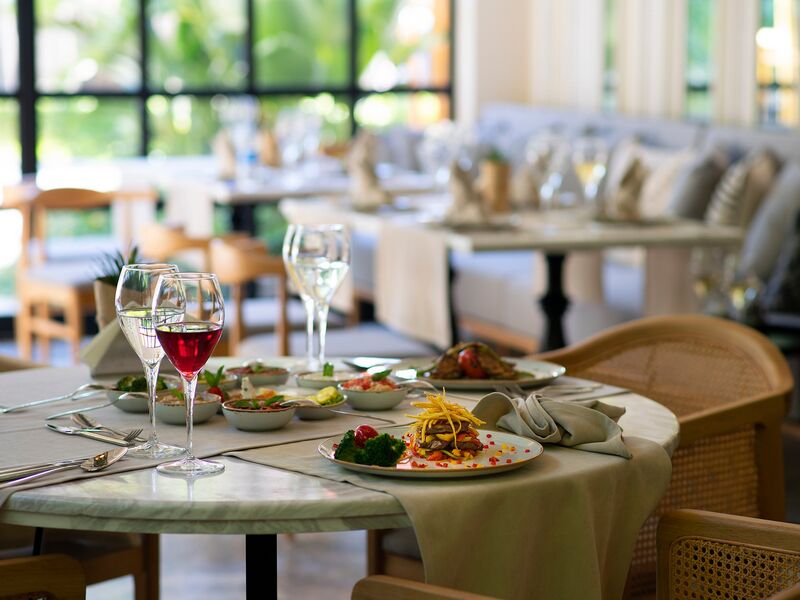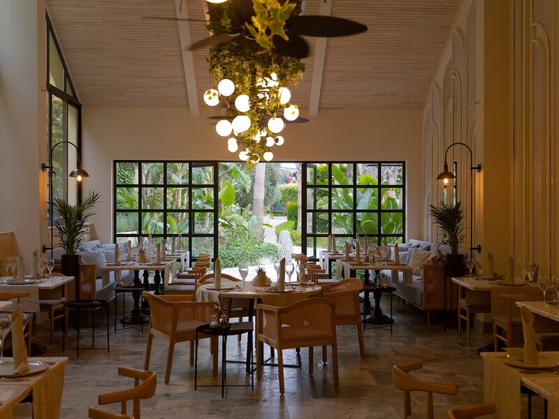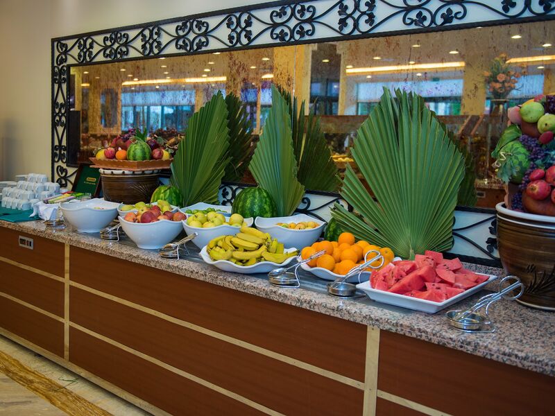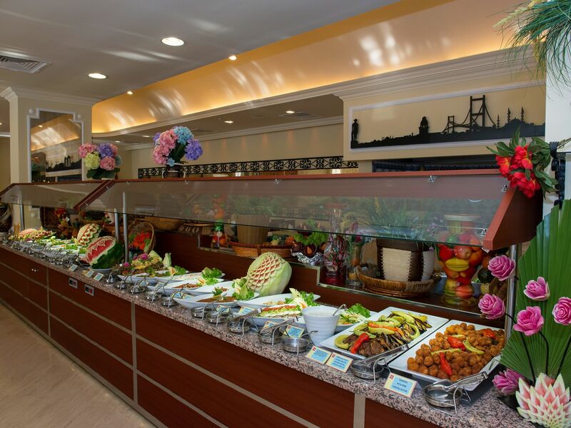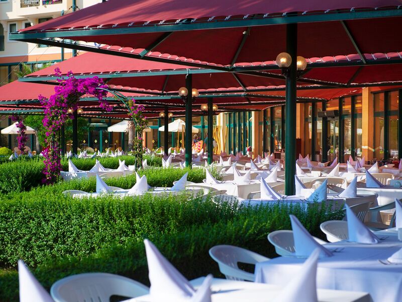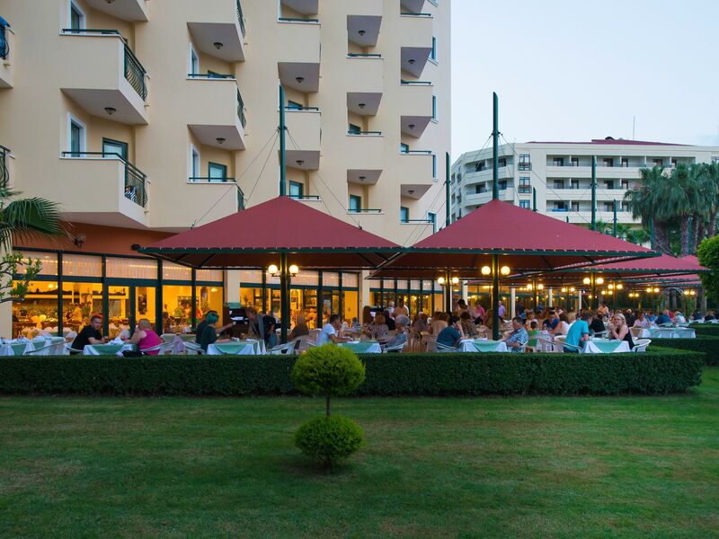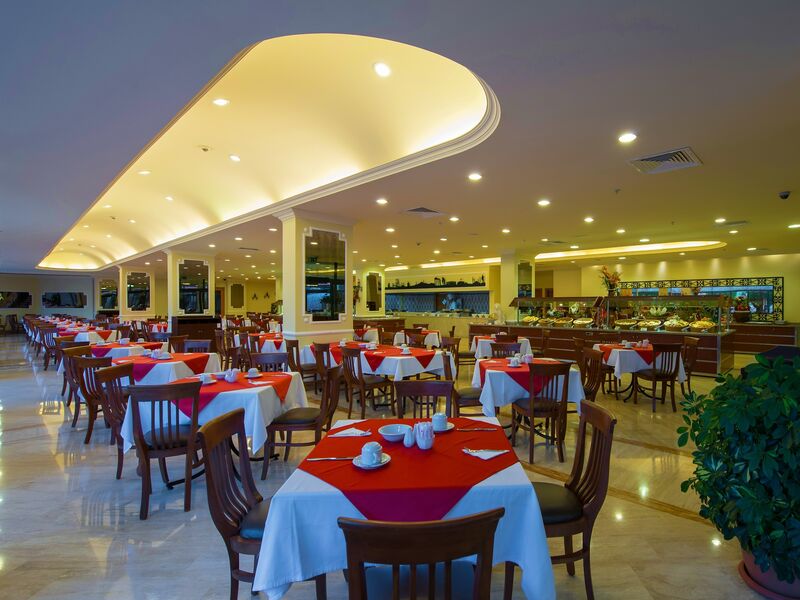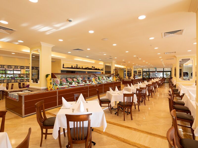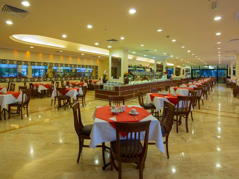 Dış terası bulunan ana restoran klimalıdır. Mini Mare kulüp, Havuz manzarası ve güneşlenme alanı olan bahçede şezlong,minder ve şemsiyeler,