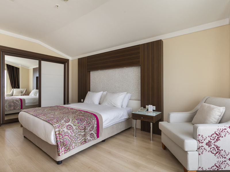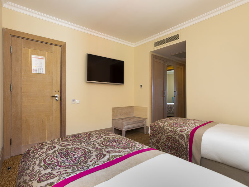 Aile Odası; 74 adet, 2 yatak odalı, 35 m2, max. 3+2 yada 4 kişi konaklamaya uygundur. Ara kapılıdır.