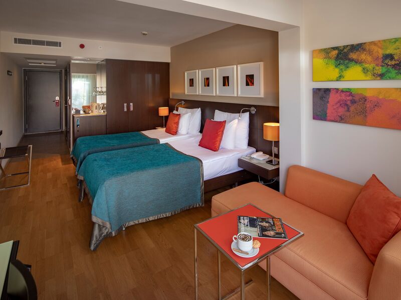 Superior Kısmi Deniz Manzaralı ,French yatak + kanepe veya iki tek kişilik yatak + koltuk. Elektronik Kartlı anahtar
