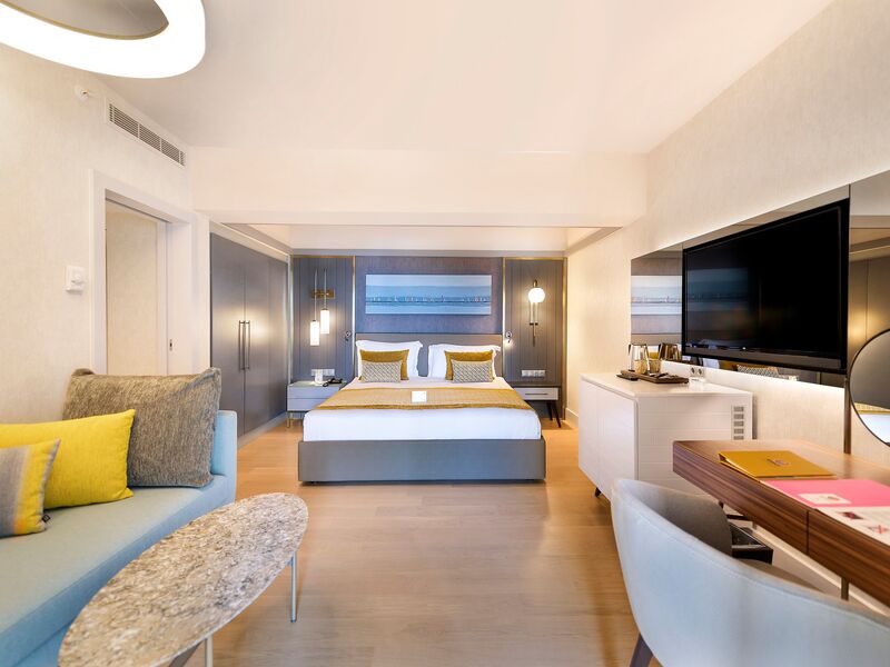 soyunma köşesi, Duş /WC ayrı, iki Lavabo, Merkezi Klima, Telefon, LCD TV, Uydu Yayını, Kablosuz İnternet, Fön, Bornoz & Terlik, Makyaj Aynası, Mini Bar, Kasa,Su Isıtıcısı ve Çay Kahve seti, Nespresso Kahve Makinesi,Geniş Balkon. Lüks oda