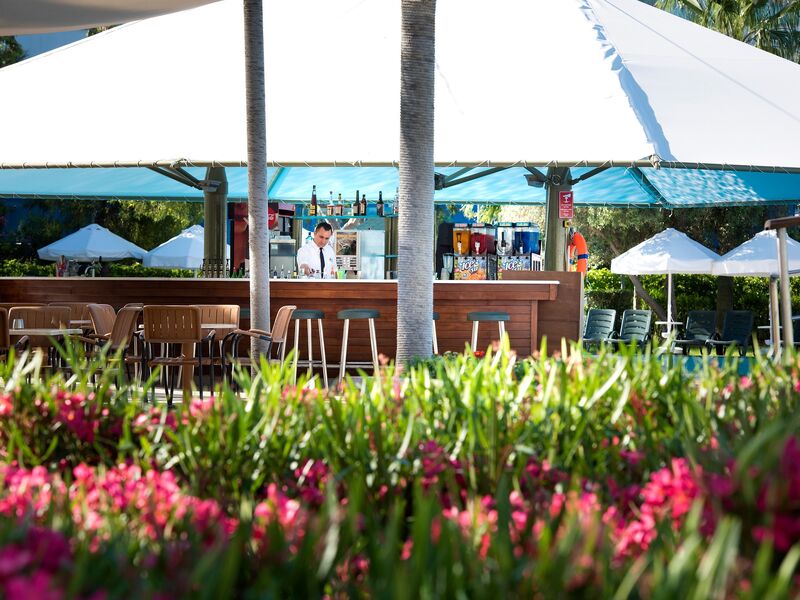 Swim Up Oda 15 44 Bahçe katında yer alır, french yatak + kanepe veya iki tek kişilik yatak + koltuk.