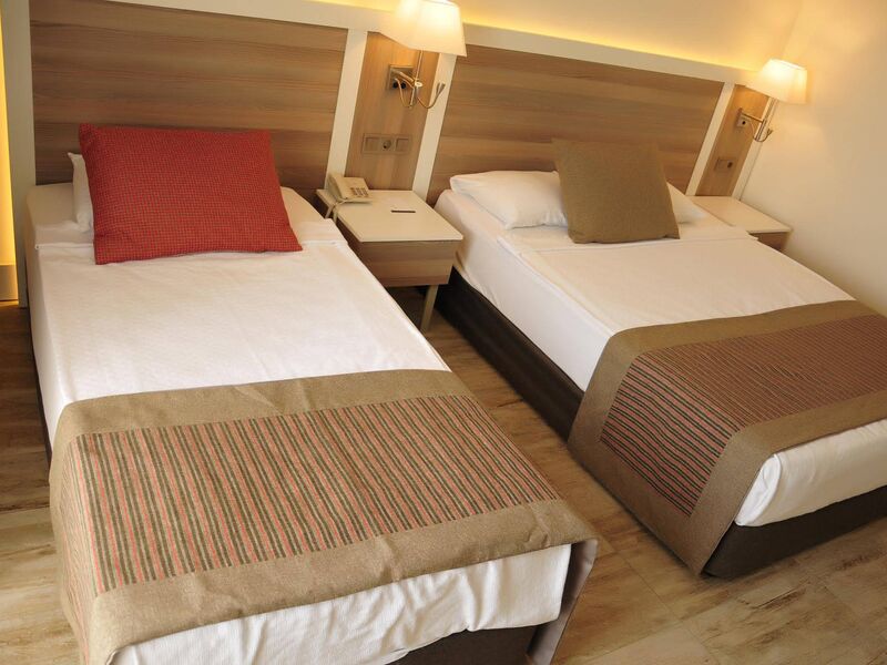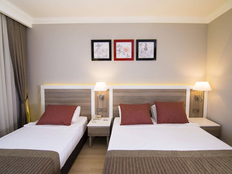 Standart Odalar : 391 adet- 27 m2 Min1-Max3 pax Özenle Dizayn edilmiş odalarda;uydu yayınlı LCD televizyon, ,direkt hatlı telefon, split klima, kasa, laminant parke zemin, balkon, banyoda duş & WC makyaj aynası,