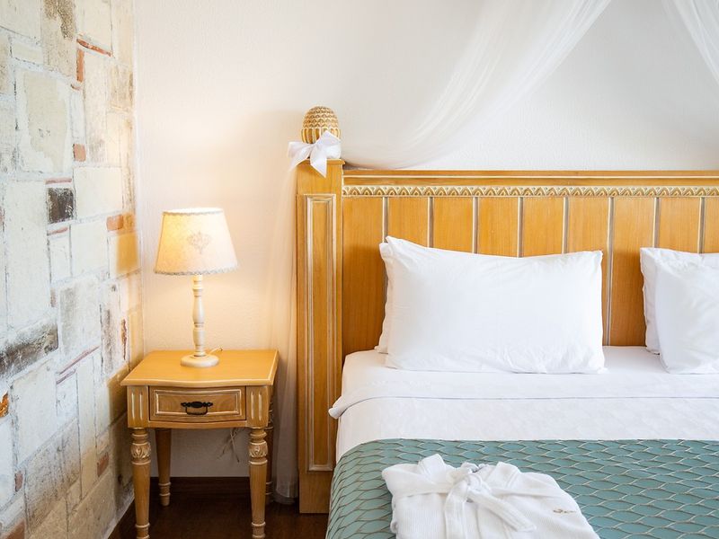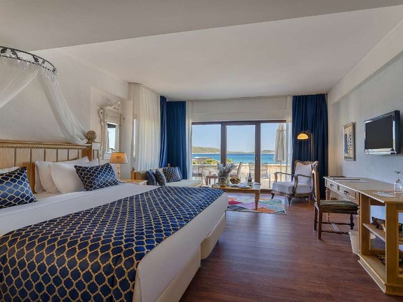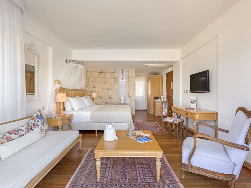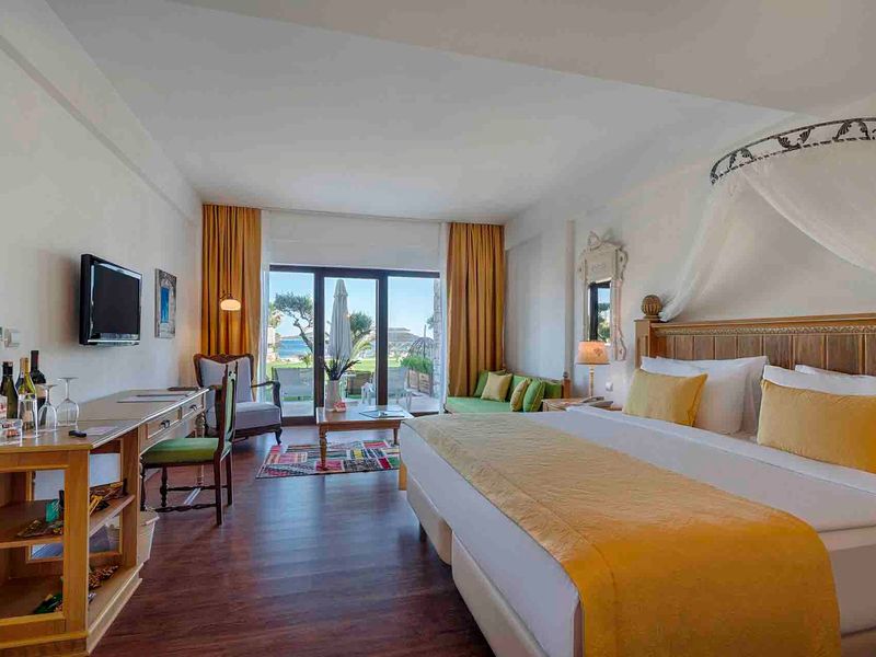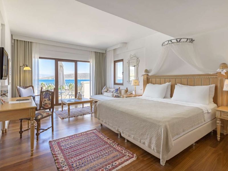 Deluxe Deniz Manzaralı,35 m² Modern tasarımı ile French veya Twin Yatak/  1 Banyo (Küvet / Wc). Min.2, max.2+2 veya 3 kişi konaklayabilir. Sofa Bed veya ilave yatak konulabilir.