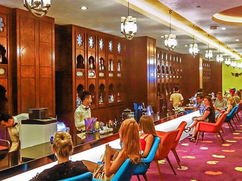 Notte Bar -1. Katta kapalı alanlar Yiyecek &İçecek ve eğlence dünyasının merkezinde bulunan bu popüler barımız gün boyunca 24 saat Ultra herşey dahil konsepti dahilinde hizmetinizdedir.