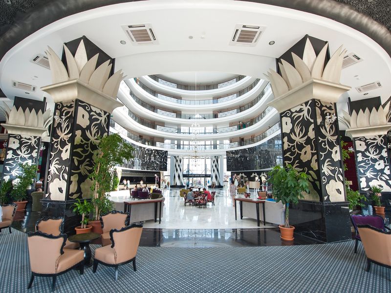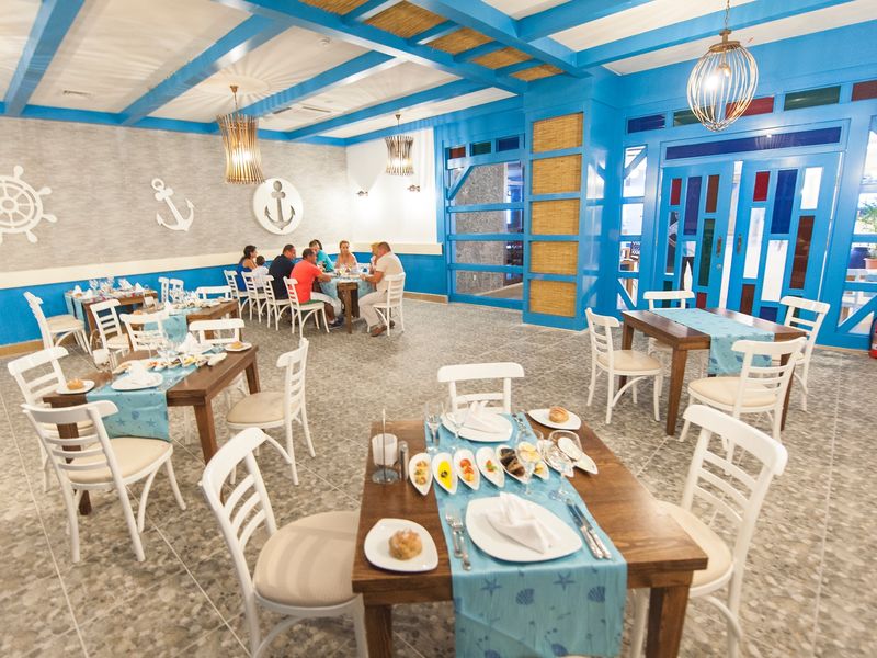 Sabah, öğle ve akşam açık büfe yemekler. Tesisin belirlemiş olduğu markalar dahilinde bazı yerli alkollü ve alkolsüz içecekler barda 24 saat ücretsiz. Taze sıkılmış meyve suları, Türk kahvesi ve şişe içecekler ücretli. A la carte restoran rezervasyonlu ve haftada 1 kez ücretsiz. Minibar haftada 1 kez soft içecekler ve bira ile dolduruluyor.