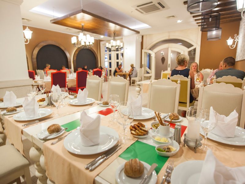 Ana restoranda kahvaltı ve akşam yemeği açık büfe olarak servis edilmektedir ve alakart bir restoran da mevcuttur. Türk ve dünya mutfaklarından seçkin yemeklerin tadını tercihinize göre açık veya kapalı alanda çıkarabilirsiniz. Bar gün boyunca çeşitli alkollü ve alkolsüz içecekler servis etmektedir.
