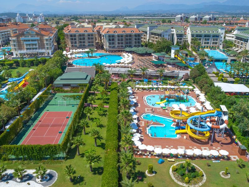 Tesis 39.000 m2 Alan üzerine kurulmuş,200 m özel plaj ve iskele Plaj mevcuttur,Son Renovasyon 2014-2015 (Mimari, bina dışı, mobilya ve mefruşat) Antalya Havlimanına 55 km dir,Side'ye 12 km ,Manavgat 15 km Çolaklı'ya 3 km mesafededir.Tesisde toplam 464 oda olup, otelimiz 1 Hotel Ana Bina ( 4 Blok ) ve 1 Park Villa Konaklama ünitesinden oluşmaktadır.