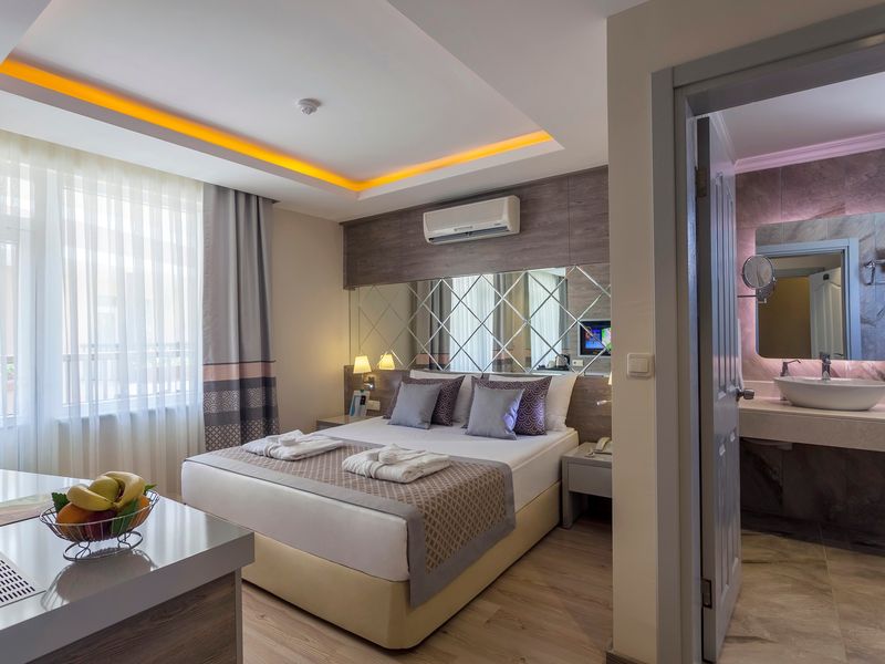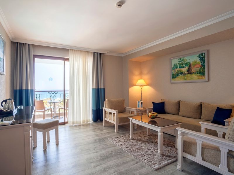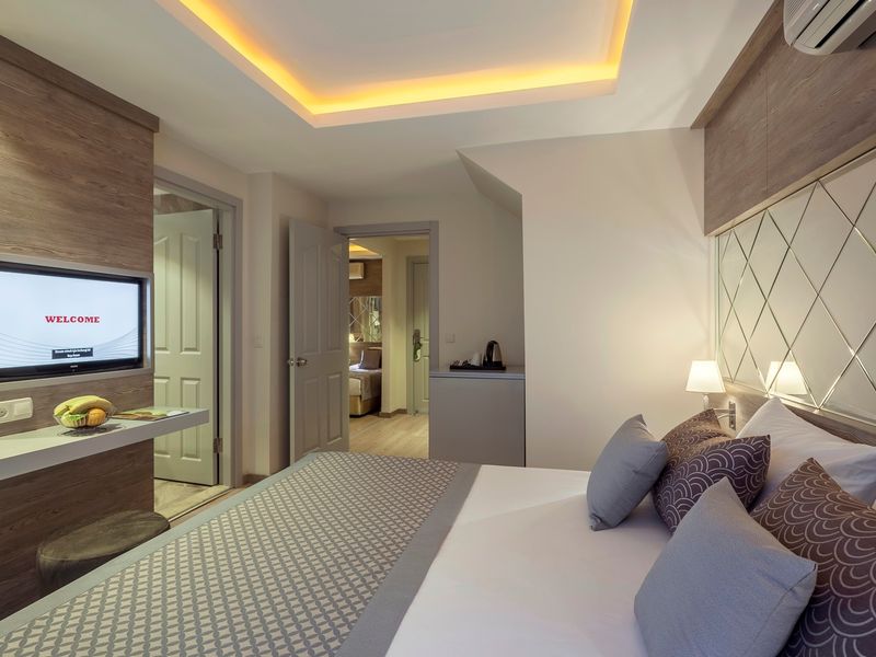 Hotel Suite oda sayısı 8 adet olup suite odalar 62 m2 dir.Max. 4 yetişkin konaklama (2 Yatak odası, 1 Salon, Banyoda Jakuzi) 1.oda Çift kişilik yatak, 2.oda ranza ve salonda çekyat bulunmaktadır.
