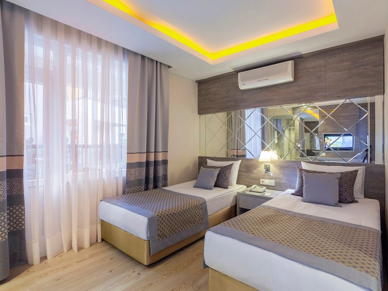 Hotel Balkonsuz standart , oda sayısı 24 adet olup odalar 15-26 m2 dir. Max. 2 yetişkin konaklama (Odalarımızda Balkon bulunmamaktadır) Çift kişilik yatak veya iki adet tek kişilik yatak bulunmaktadır.