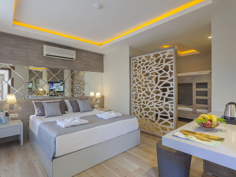 Park Villa Family-1 oda sayısı, 23 adet olup,25 m2 dir.Max. 2 yetişkin + 2 çocuk konaklama (Çift kişilik yatak ve ranzalı geniş bir odadan oluşmaktadır.)