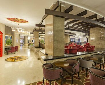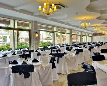 Odaların dışında, resepsiyon, lobby, lobby bar, Diğer barlar, ana restaurant, A’La Carte Restaurantlar, Toplantı salonu, Okuma Köşesi, kapalı Yüzme havuzu, Oyun Salonu, Bowling, Bilardo.Sörf, kano, deniz bisikleti, banana, paraşüt, su kayağı, jet ski (sahilde özel işletme) , masa tenisi, aerobik plaj voleybolu, jimnastik, Internet Cafe, dart, bilardo, Video Games, TV salonu,