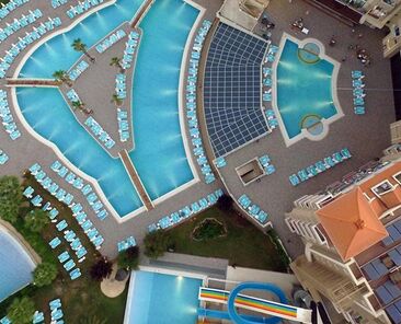 Side Mare Resort & Hotel, 1 ana bina (284 odalı ve 6 katlı) ve 1 küçük yan binadan (36 odalı ve 3 katlı) oluşmaktadır. Ana binamız; Resepsiyon, Televizyon köşeli Lobby Bar, 3 adet asansör, Teraslı Restaurant, Dükkanlar, Disco, Wellness Center ile Kapalı havuzdan oluşmaktadır. Otelimizin bahçesinde, 2 yüzme havuzu güneşlenme teraslı, 1 dalga havuzu, 3 adet çocuk havuzu ve 4 adet Kaydırak (belirlenen saatler arasında çalıştırılmaktadır) bulunan 1 adet küçük havuz bulunmaktadır. Havuz ve sahildeki şezlonglar, Şemsiyeler, yataklar, plaj havluları ilk girişte ücretsizdir ancak; plaj havluları değişimi ücretlidir. Küçük aperatifler alabileceğiniz Snack, Havuz Bar , Amfi Bar ve Animasyon sahnemiz de bu alandadır. Yan binamız; balkonlu, kara manzaralı, asansörsüz ve bir köprü ile ana binaya bağlanmış durumdadır.