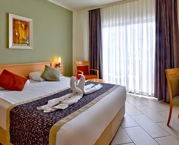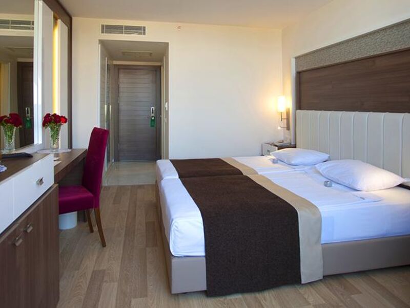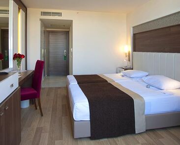 Standart Odalar: Modern olarak dizayn edilmiş olup , Telefon, Kiralık Kasa, Uydu-kanalı, Merkezi Klima (01.06. – 30.09 tarihleri arasında belirli saatlerde çalıştırılmaktadır ) , Mini bar ( Giriş günü soft içeceklerle ücretsiz 1 kez doldurulur, daha sonra sadece su ilave edilir), Fön, Banyo, W/C ve Balkondan oluşmaktadır.