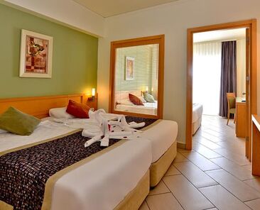 2 Odalı Aile Odaları: Standart odalarla aynı donanıma sahip, rahatlıkla 4 yetişkinin konaklayabileceği 2 odadan oluşmaktadır.