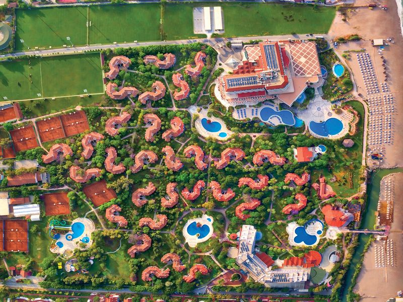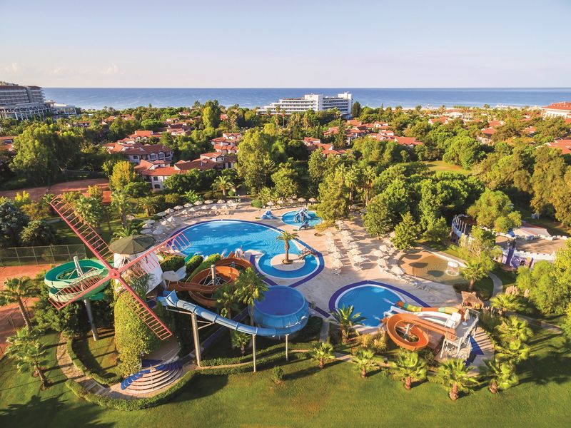 150.000 m2 alana kurulu toplam 504 odası bulunan tesiste, açık yüzme havuzu, 6 adet yetişkinler için 5 adet çocuklar için su kaydırağı, 30 adet tenis kortu, animasyon, gece şovları, fitness center, bowling, su sporları bulunmaktadır.