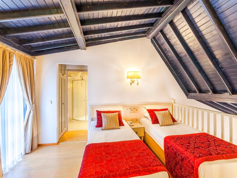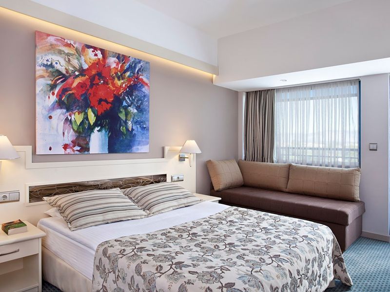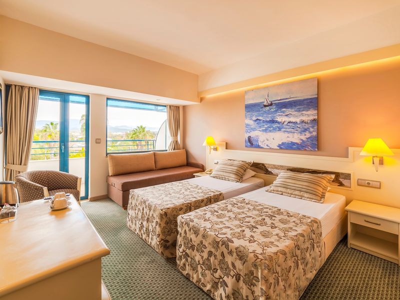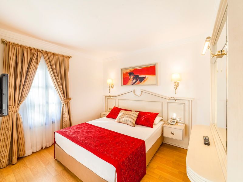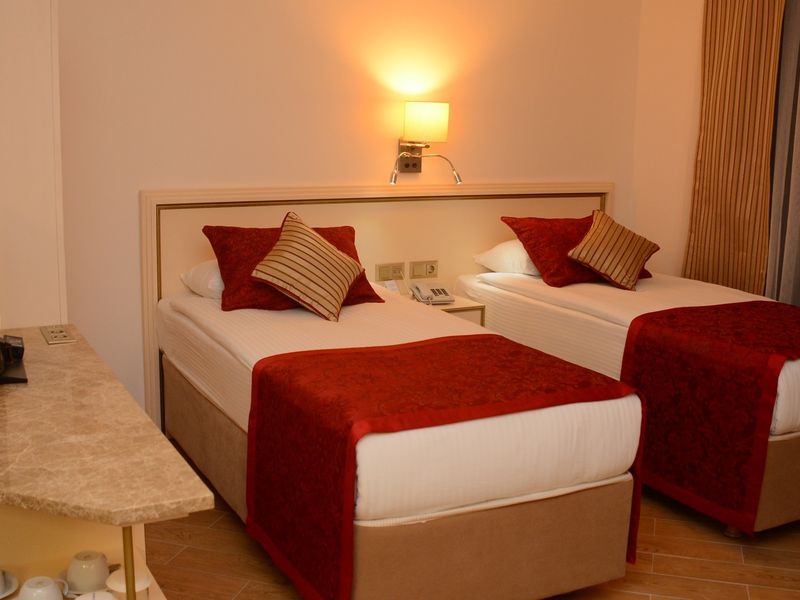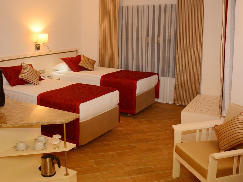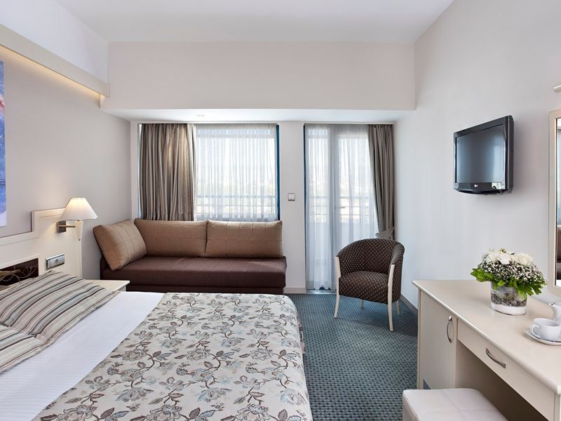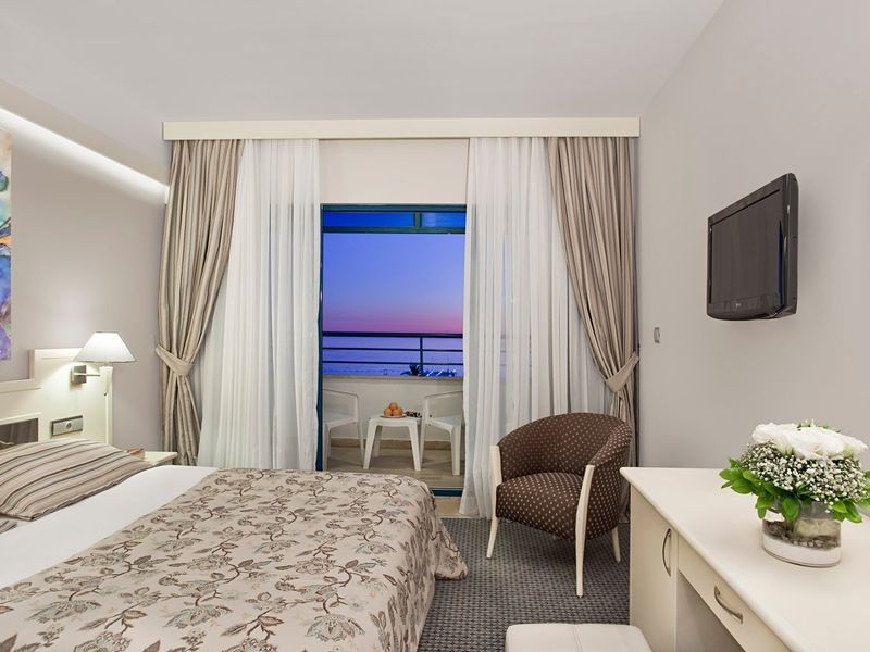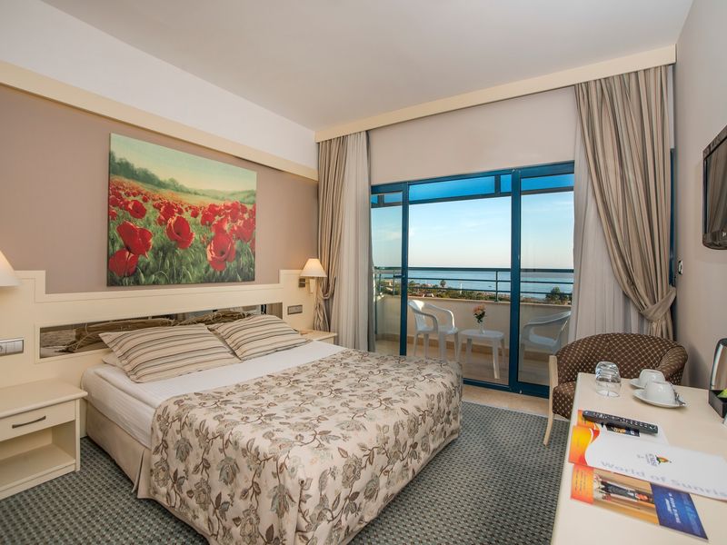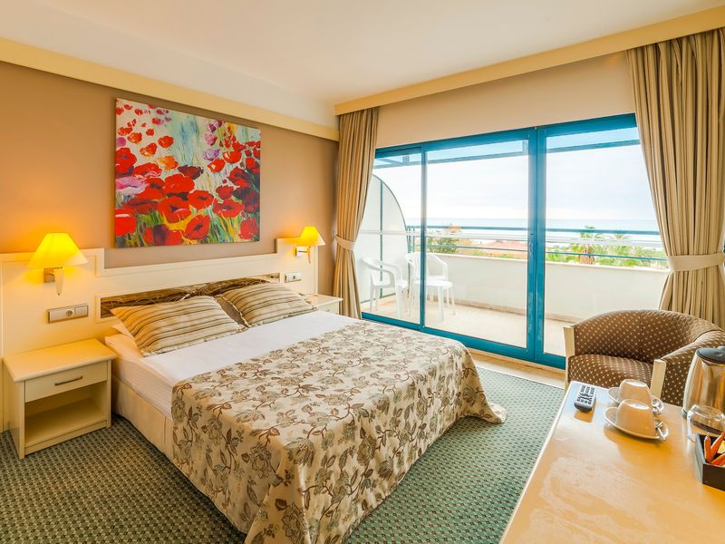 Standart Otel Odası Deniz Manzara:28 m2 genişliğindeki odalarda balkon, duş, saç kurutma makinesi, merkezi klima, telefon, uydu yayınlı tv, minibar, halı zemin, kasa mevcuttur.