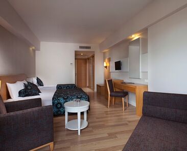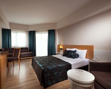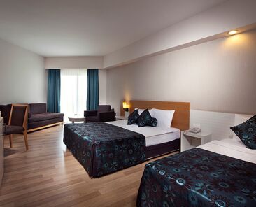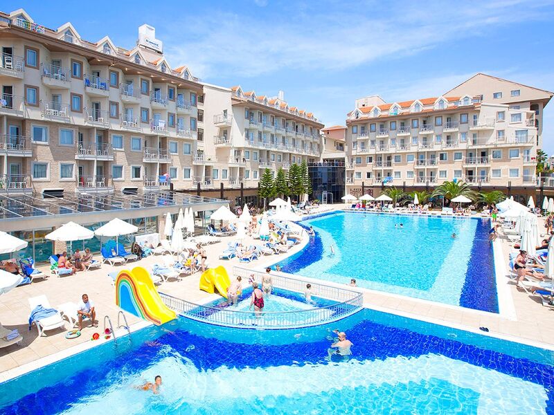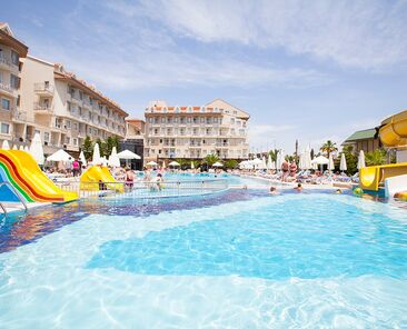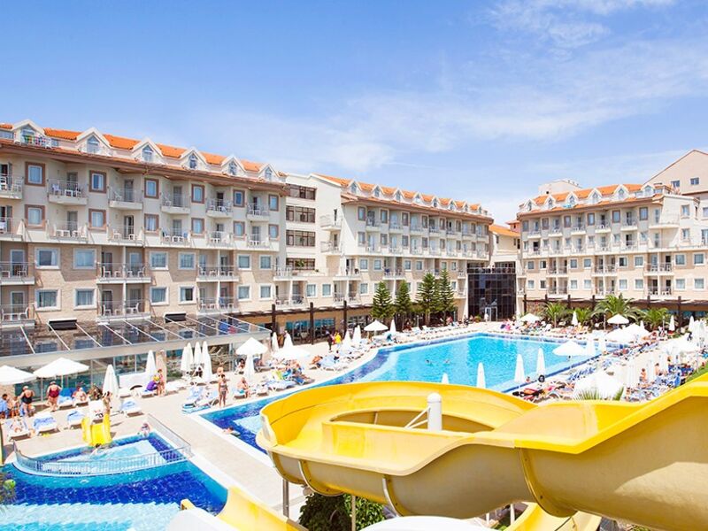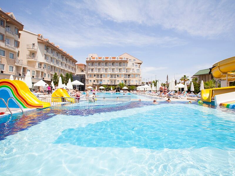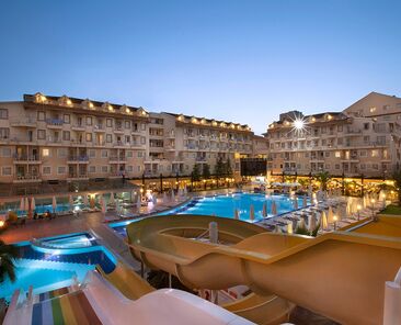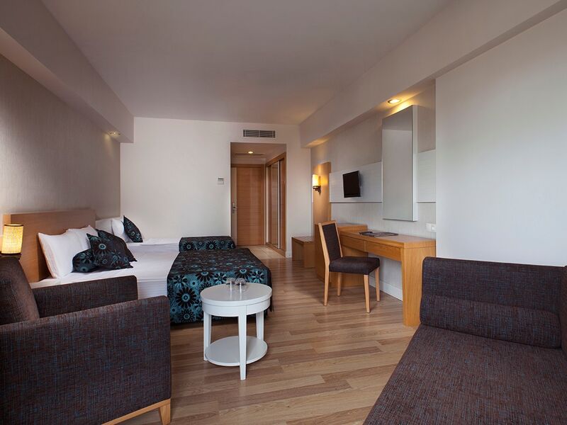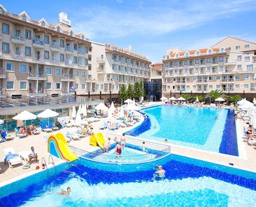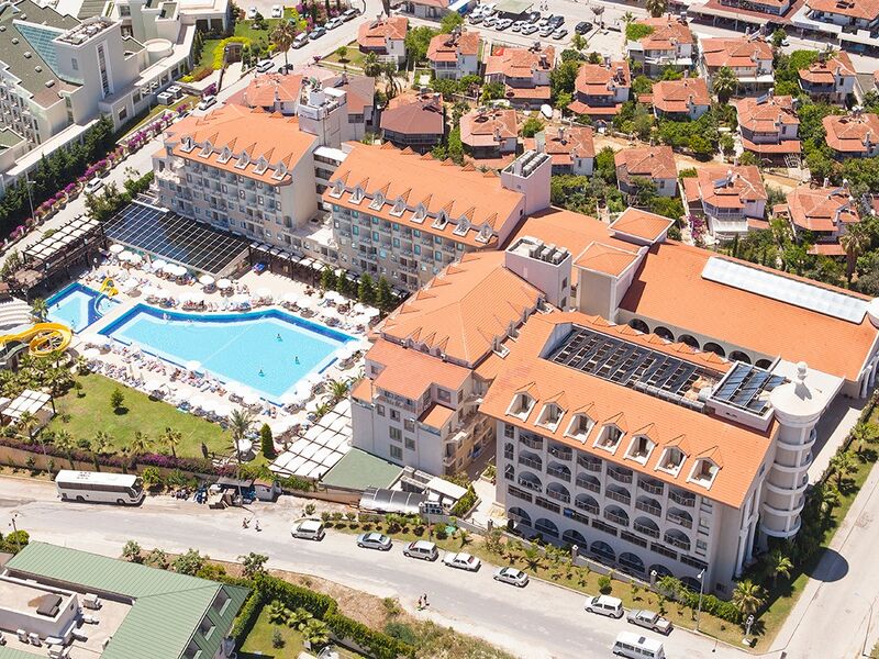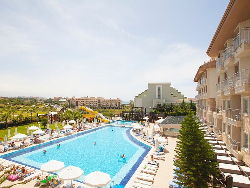 Tesiste 3 adet açık havuz, 1 adet kapalı havuz, 1 adet çocuk havuzu mevcuttur. Denize yalnızca 300 m mesafesi olan tesiste gün boyu suyun tadını çıkarabilirsiniz. Balayı çiftleri için odaya meyve sepeti ve şarap ikramı bulunmaktadır.Bütün odalar laminant kaplı, küvetli Banyo/Duş, WC, balkon,televizyon (uydu yayınlı), merkezi sistem klima