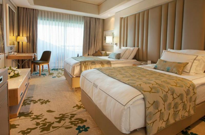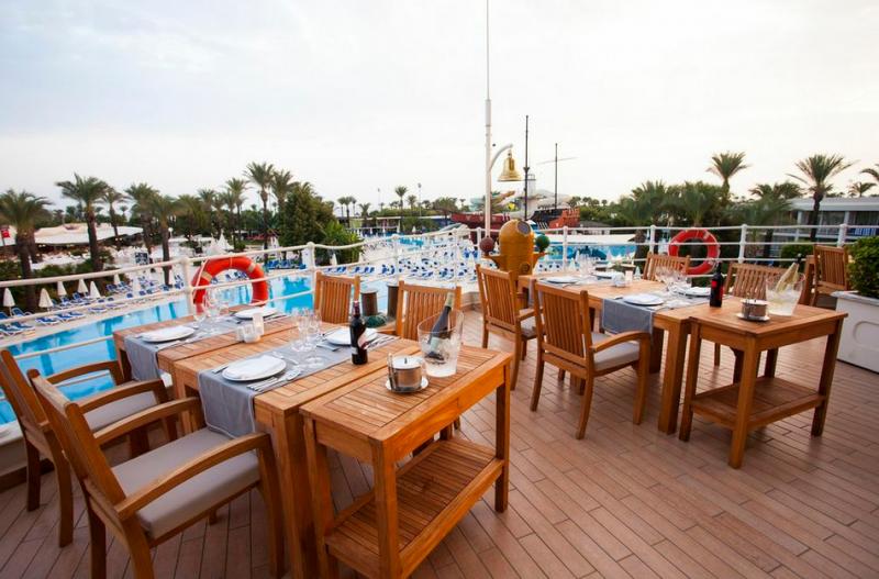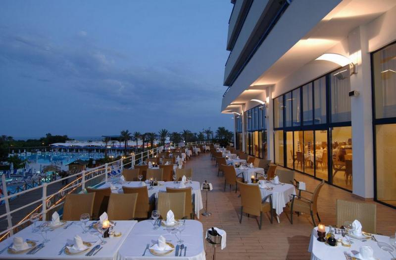 Sabah, öğle, akşam açık büfe yemekler. Bazı yerli ve yabancı alkollü ve alkolsüz içecekler 10:00-03:00 saatleri arası ücretsiz. A la carte restoranlar rezervasyonlu ve kişi başı 10 € servis ücretli. Minibar hergün soft içecekler ile dolduruluyor. Oda servisi 03:00-07:00 ücretsiz diğer saatlerde ücretlidir.